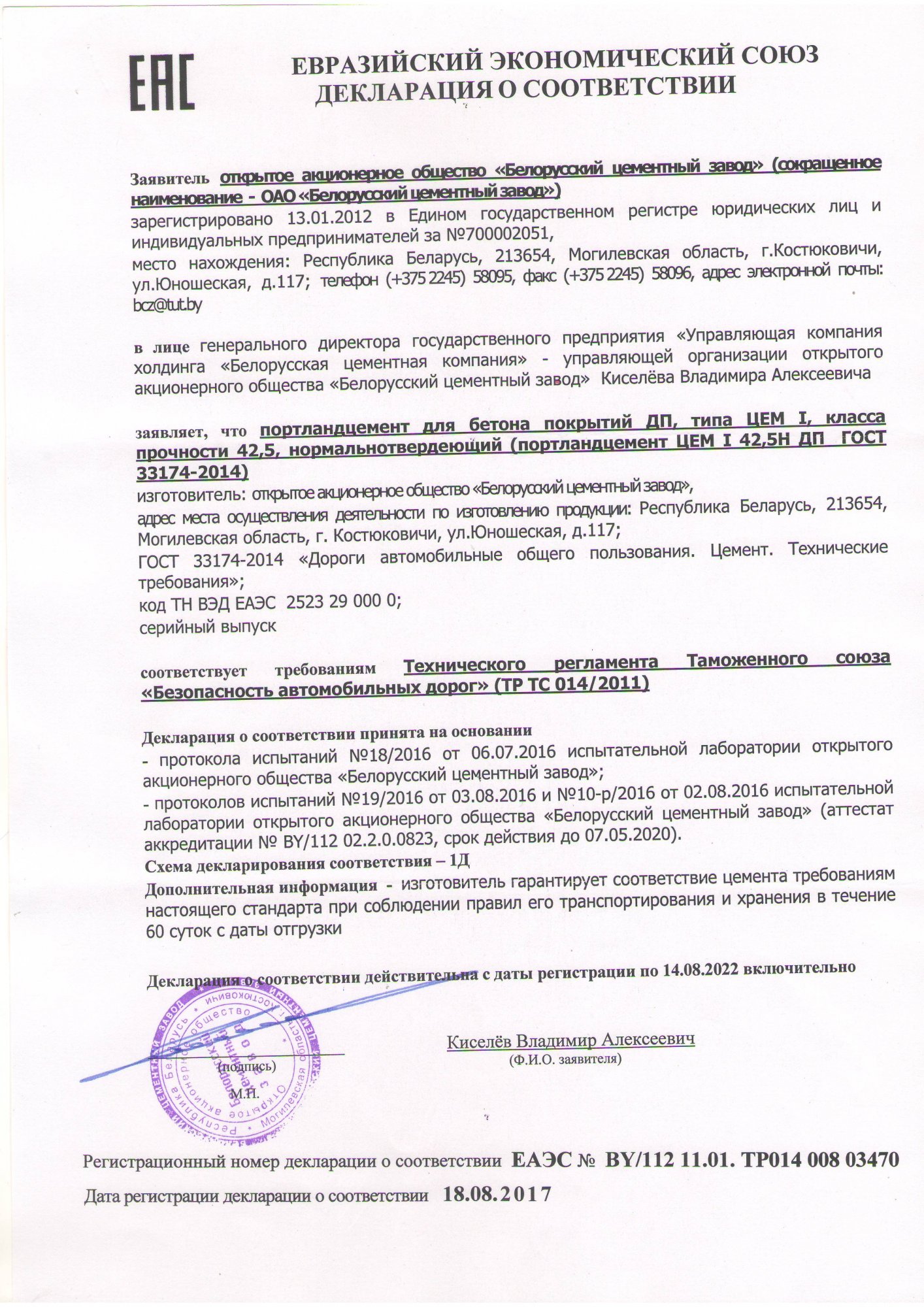 Подтвержденное сертификатами и действующими ГОСТ